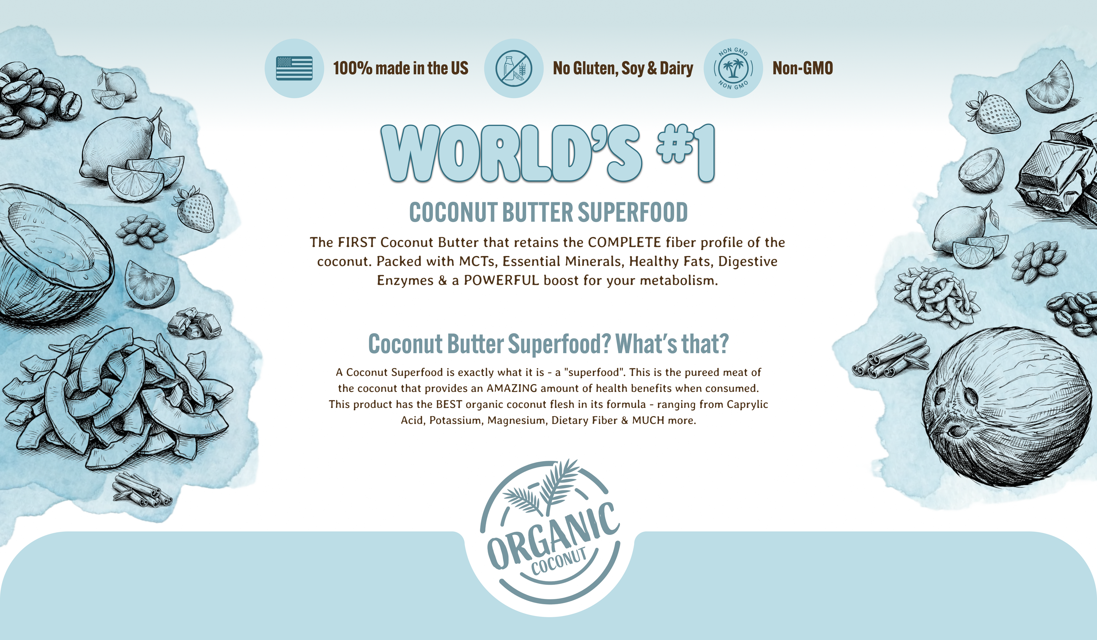 World's #1 Coconut Butter Superfood. The First Coconut Butter that retains the complete fiber profile of the coconut. Packed with MCTs, Essential Minerals, Healthy Fats, Digestive Enzymes & a Powerful boost for your metabolism.