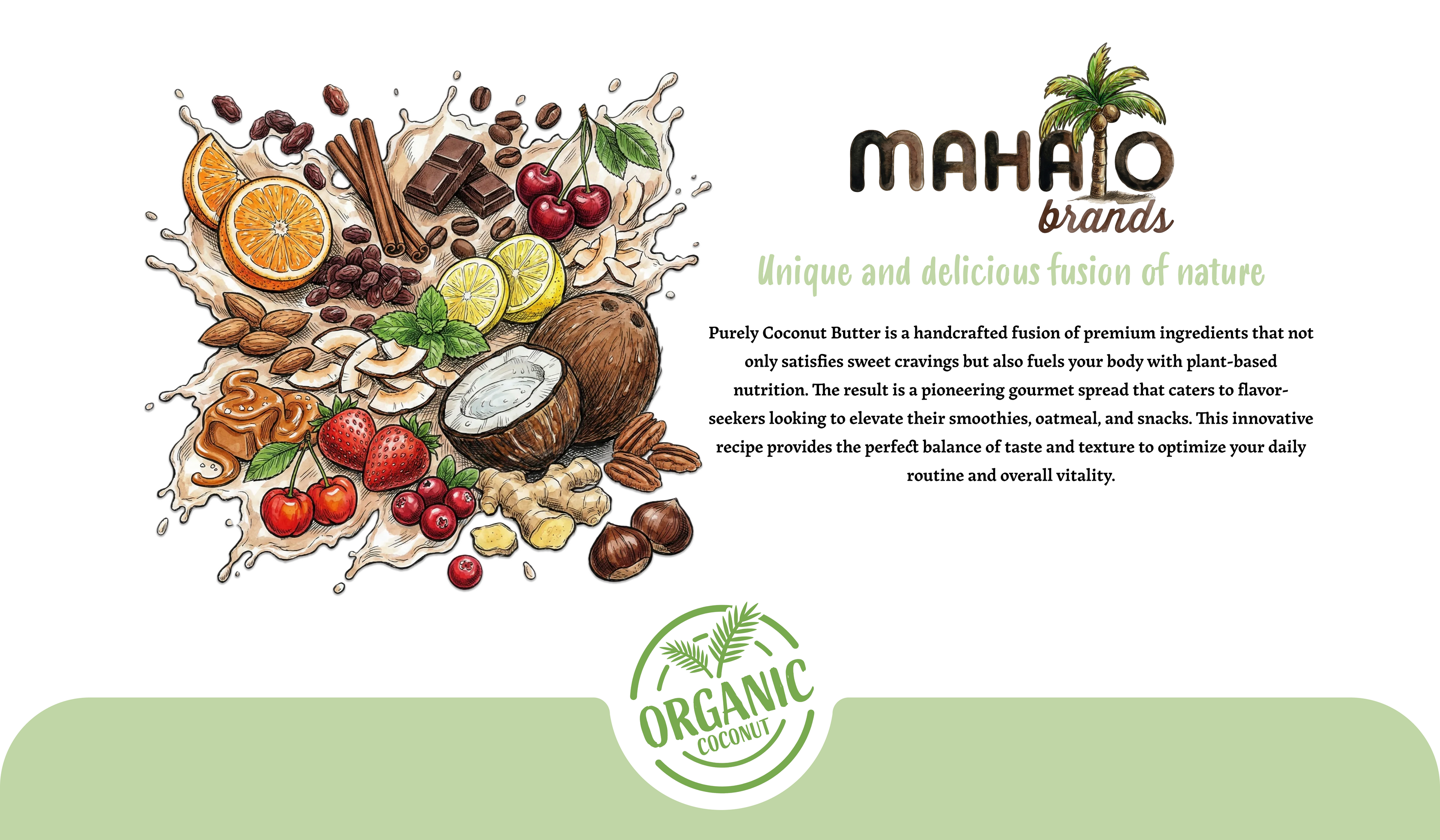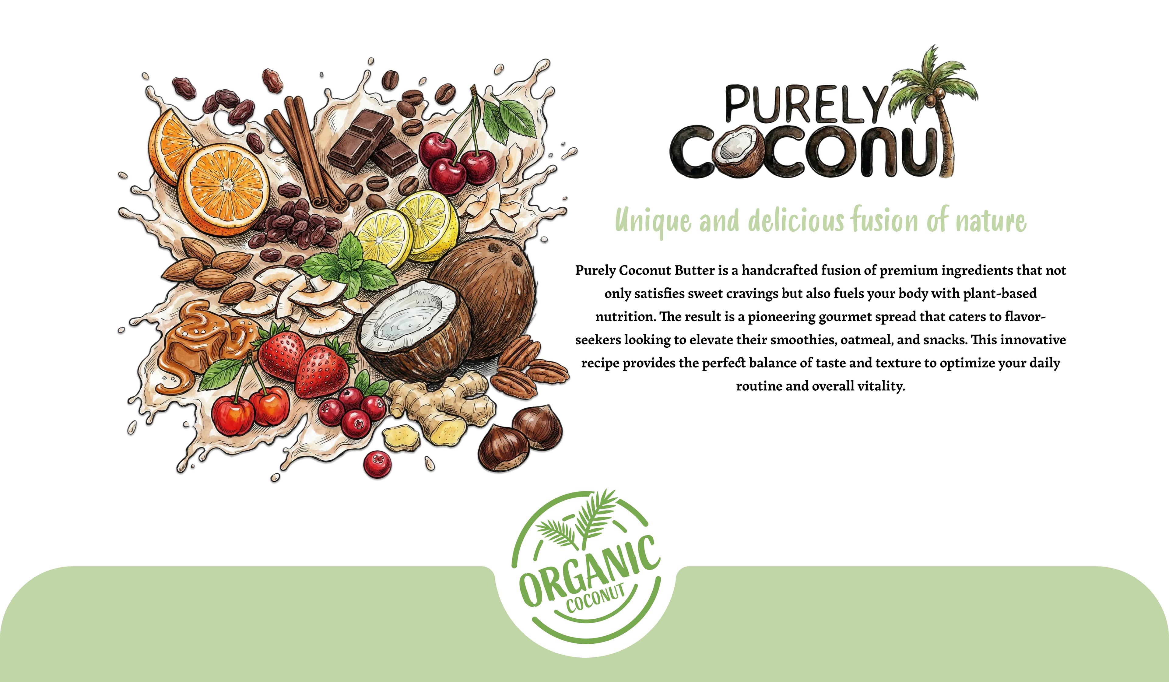 Purely Coconut Butter is a handcrafted fusion of premium ingredients that not only satisfies sweet cravings but also fuels your body with plant-based nutrition. The result is a pioneering gourmet spread that caters to flavor-seekers looking to elevate their smoothies, oatmeal, and snacks. This innovative recipe provides the perfect balance of taste and texture to optimize your daily routine and overall vitality.